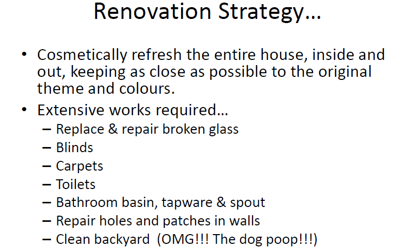 We rolled up our sleeves and got the renovation completed within 3 weeks. We engaged our regular staging company to style and furnish the property before finishing the outside renovations and put it on the market through one of our preferred agents. It sold almost immediately with a great result for everyone.